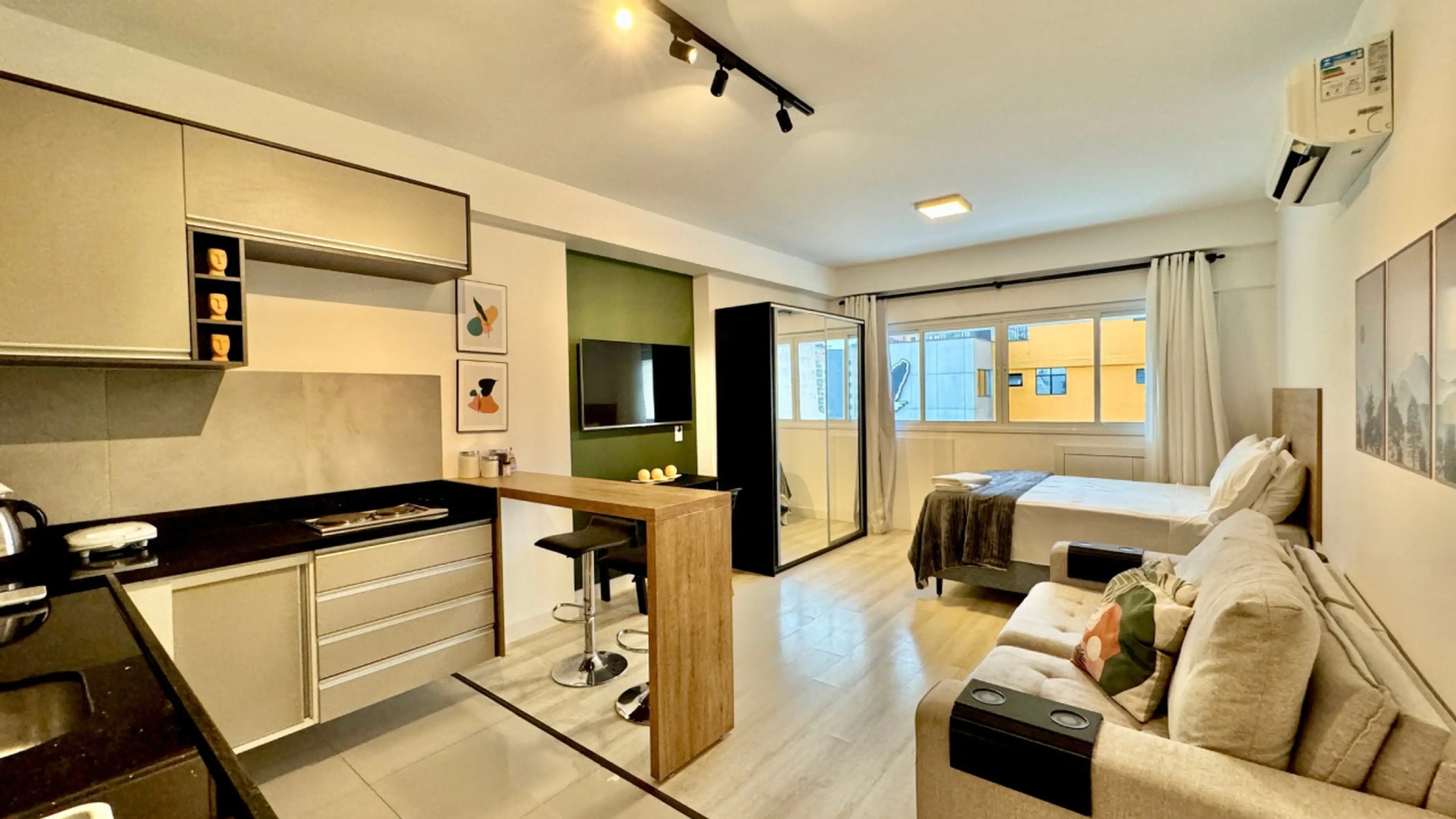 Studio, moderno e aconchegante, totalmente pensado para Airbnb, em frente ao Shopping Curitiba. Cozinha completa equipada com Geladeira, Fogão, Forno, Microondas, TV Smart 40", Cama Box Premium padrão Hotel, wifi. Vaga de Garagem opcional, com contratação na segunda etapa da reserva pelo nosso site....