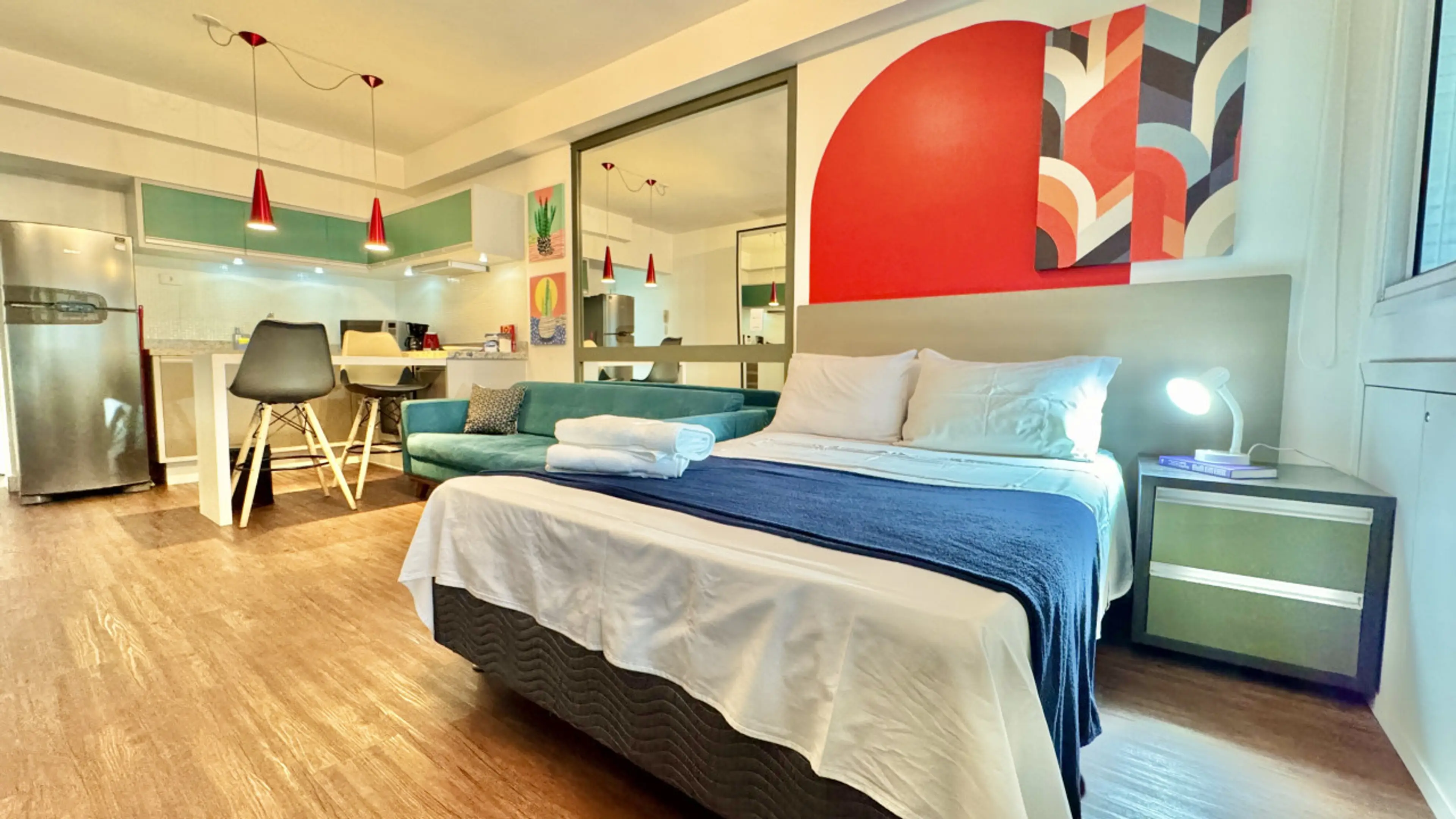 Studio Premium e aconchegante, totalmente pensado para Airbnb, em frente ao shopping curitiba, Cozinha completa equipada com Geladeira, Fogão, Microondas, TV Smart", Cama Box Premium padrão Hotel, wifi. Vaga de Garagem opcional, com contratação na segunda etapa da reserva pelo nosso site. Edifício ...