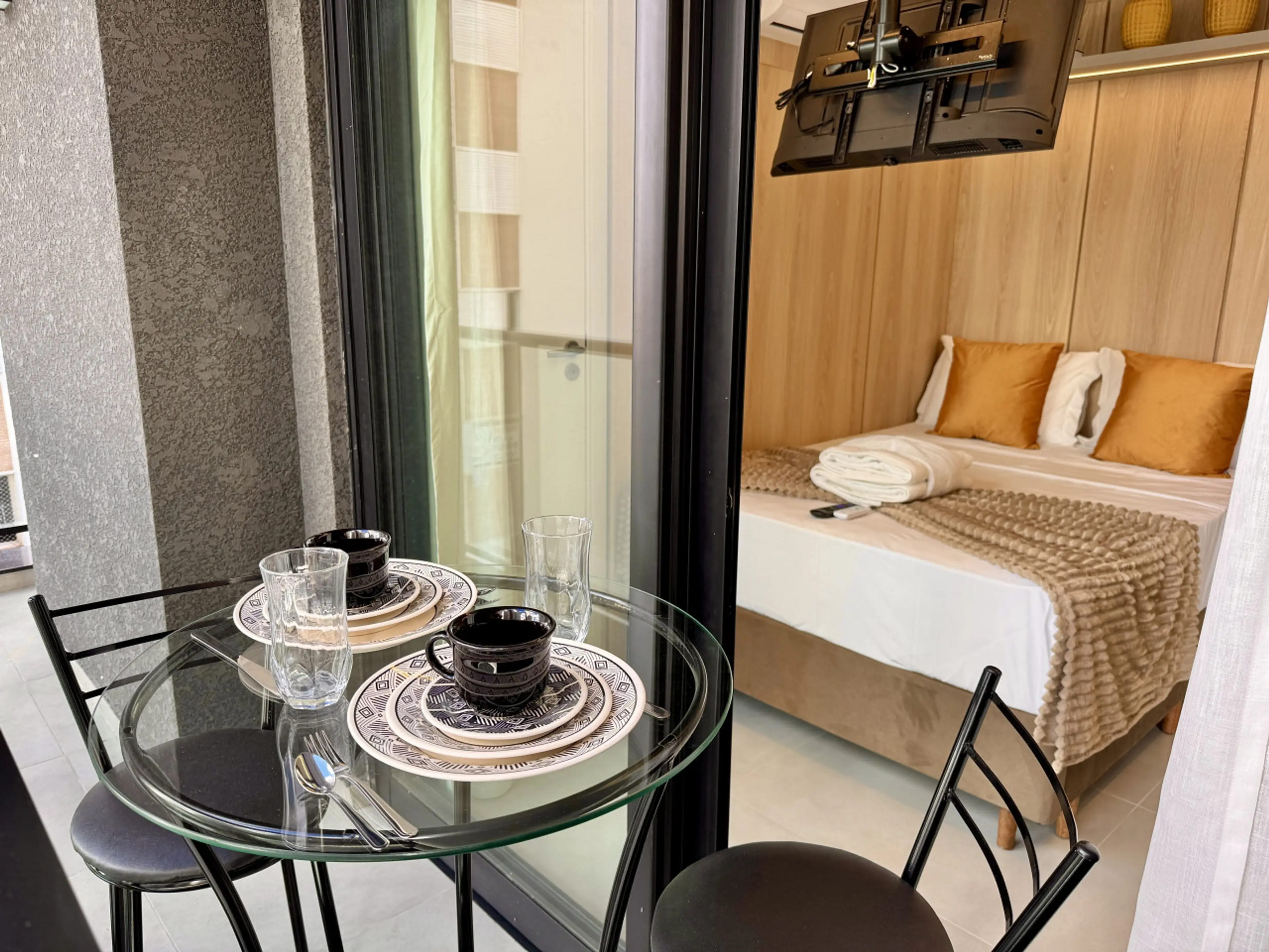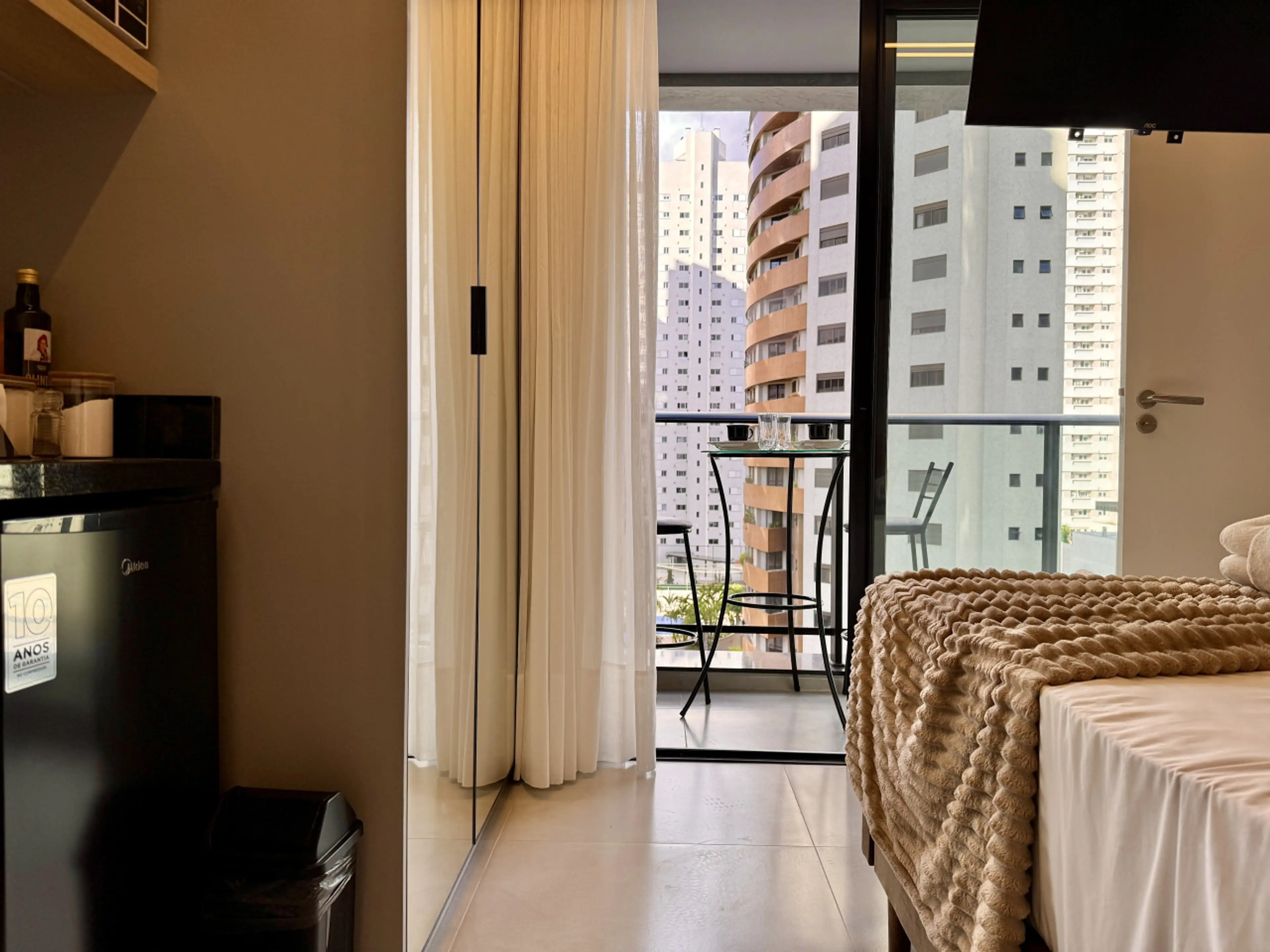 Studio Premium e aconchegante, totalmente pensado para Airbnb, no luxuoso Diamond Tower, no Batel. Cozinha compacta equipada com Geladeira, Fogão, Microondas, TV Smart", Cama Box Premium padrão Hotel, Ar condicionado e wifi, além de utensílios como panelas, copos, talheres, cafeteira, dentre outros....