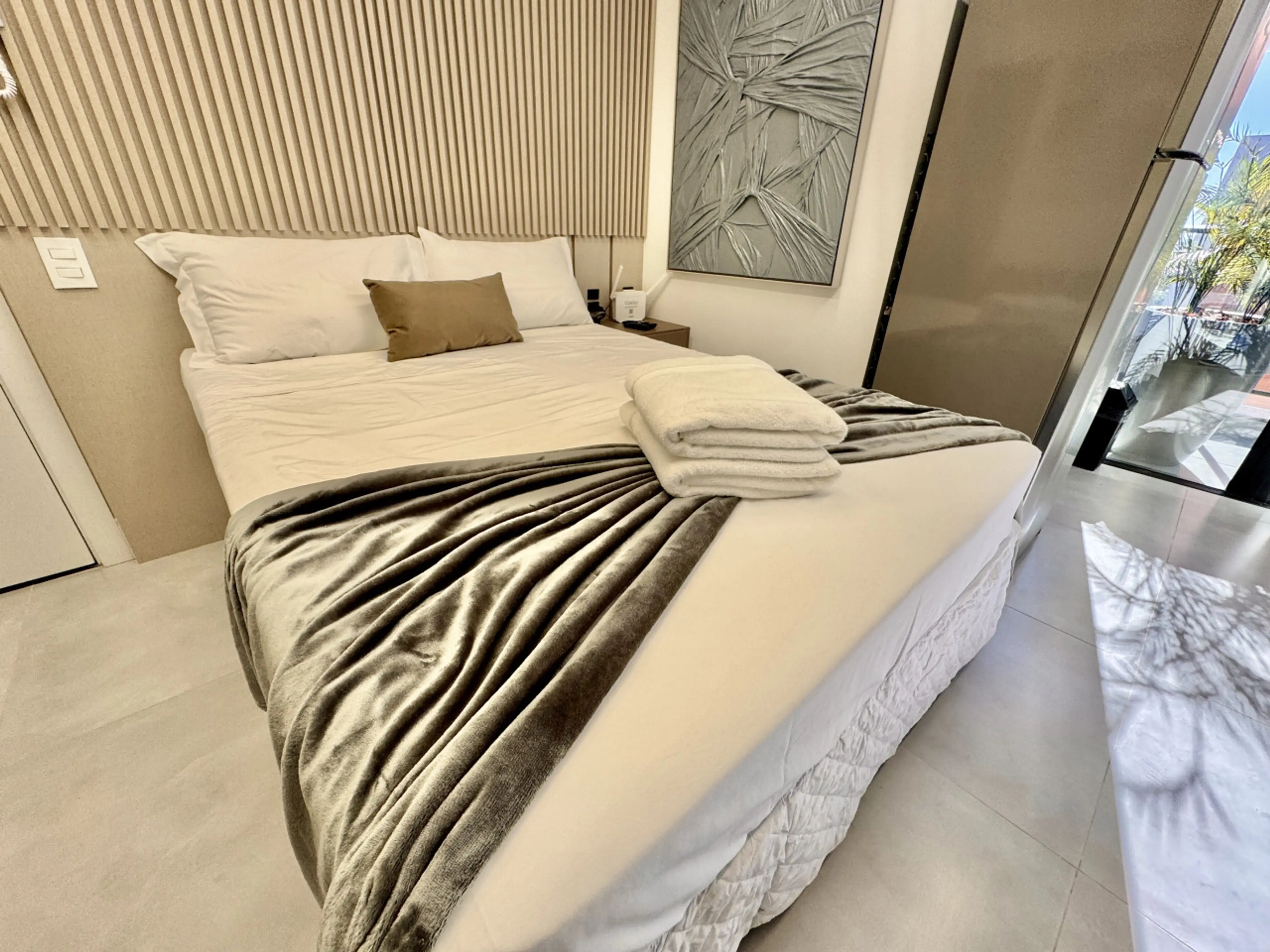 Studio Premium e aconchegante, totalmente pensado para Airbnb, no luxuoso Diamond Tower, no Batel. Cozinha compacta equipada com Geladeira, Fogão, Microondas, TV Smart", Cama Box Premium padrão Hotel, Ar condicionado e wifi, além de utensílios como panelas, copos, talheres, cafeteira, dentre outros....