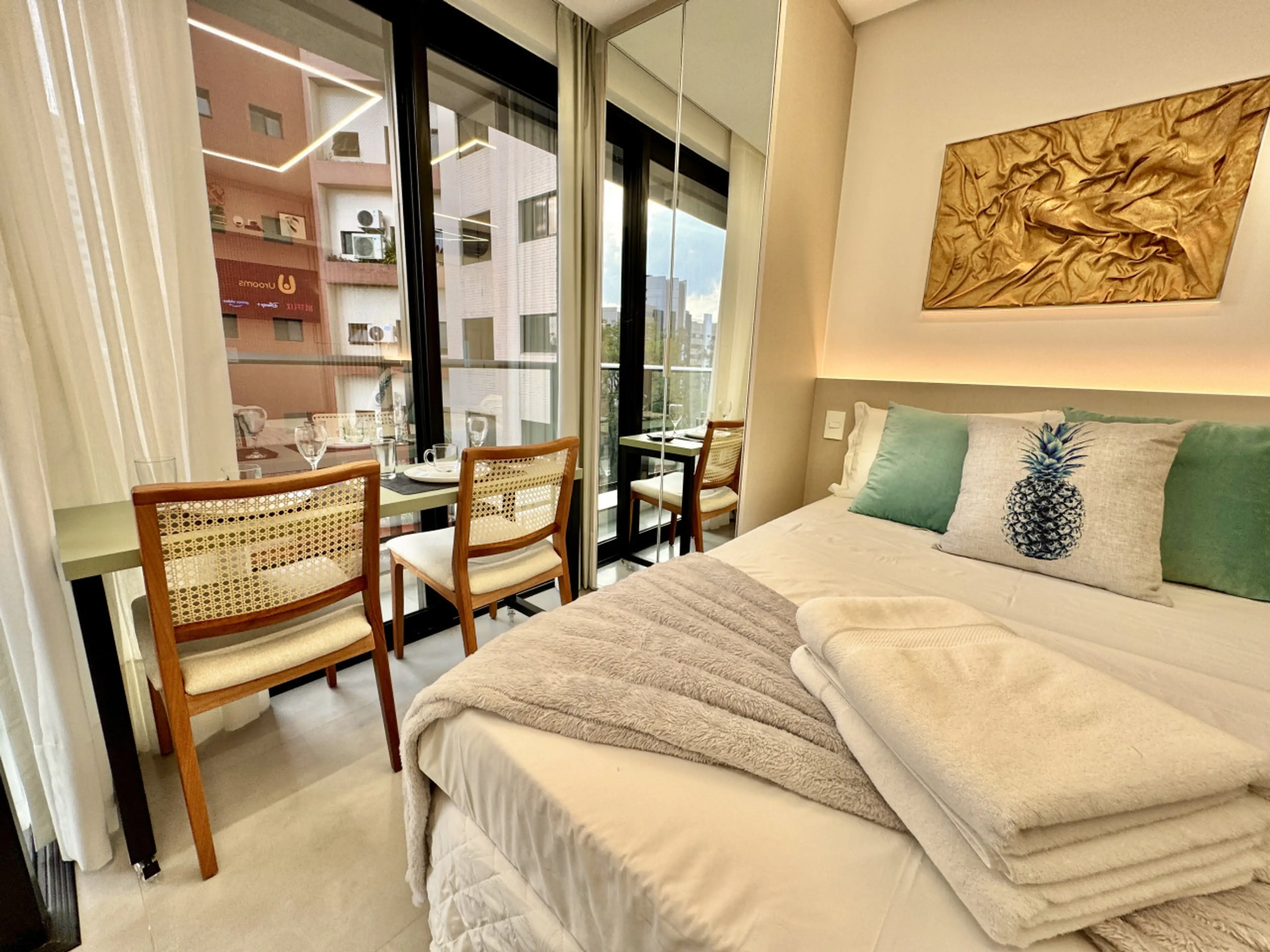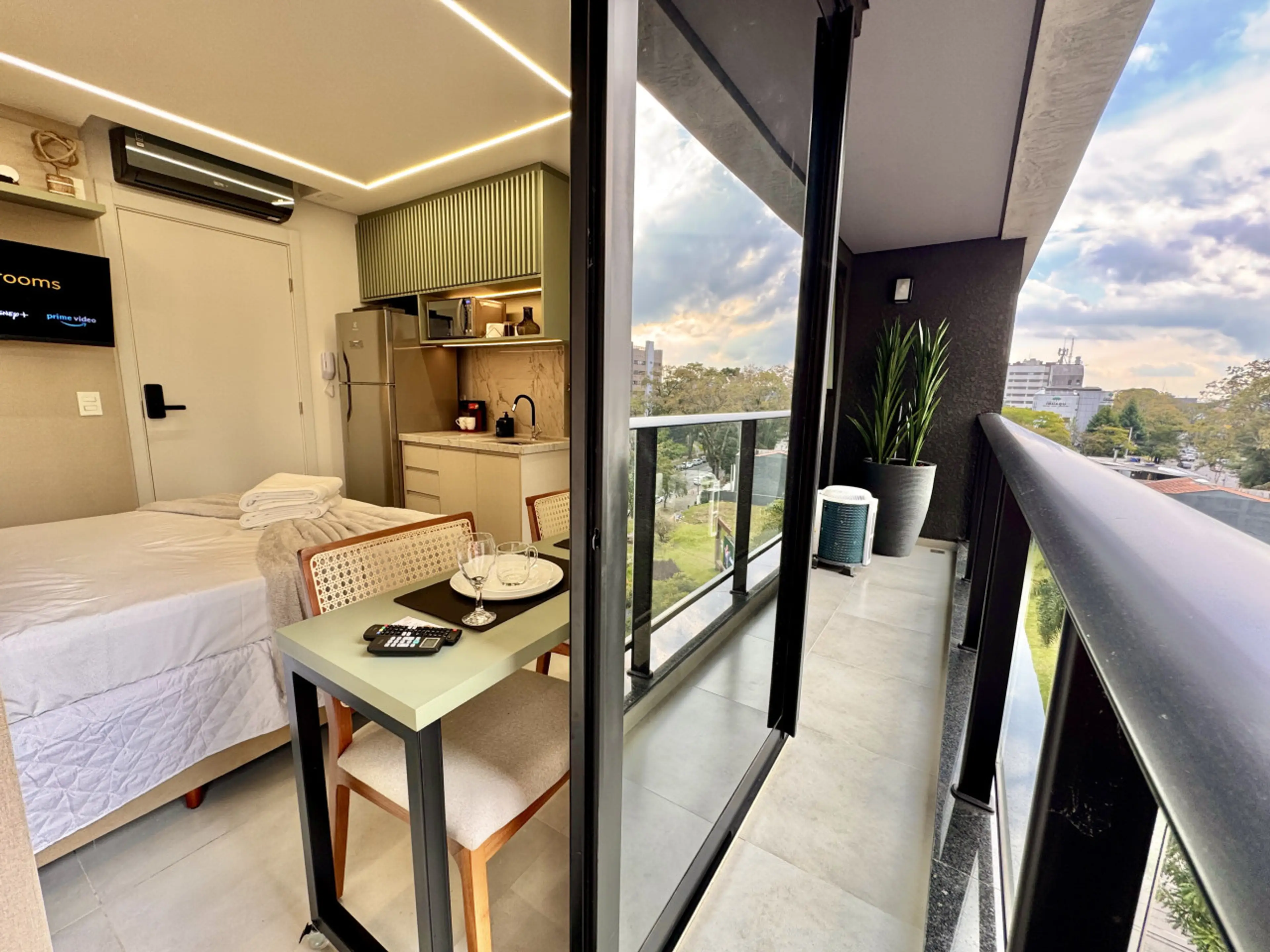 Studio Premium e aconchegante, totalmente planejado para Airbnb, no icônico Diamond Tower, no Batel — um dos bairros mais nobres de Curitiba. 🛏️Acomoda até 2 pessoas com muito conforto: Cama box premium padrão hotel 5 estrelas Ar condicionado para manter o clima sempre agradável TV Smart e Wi-Fi ...