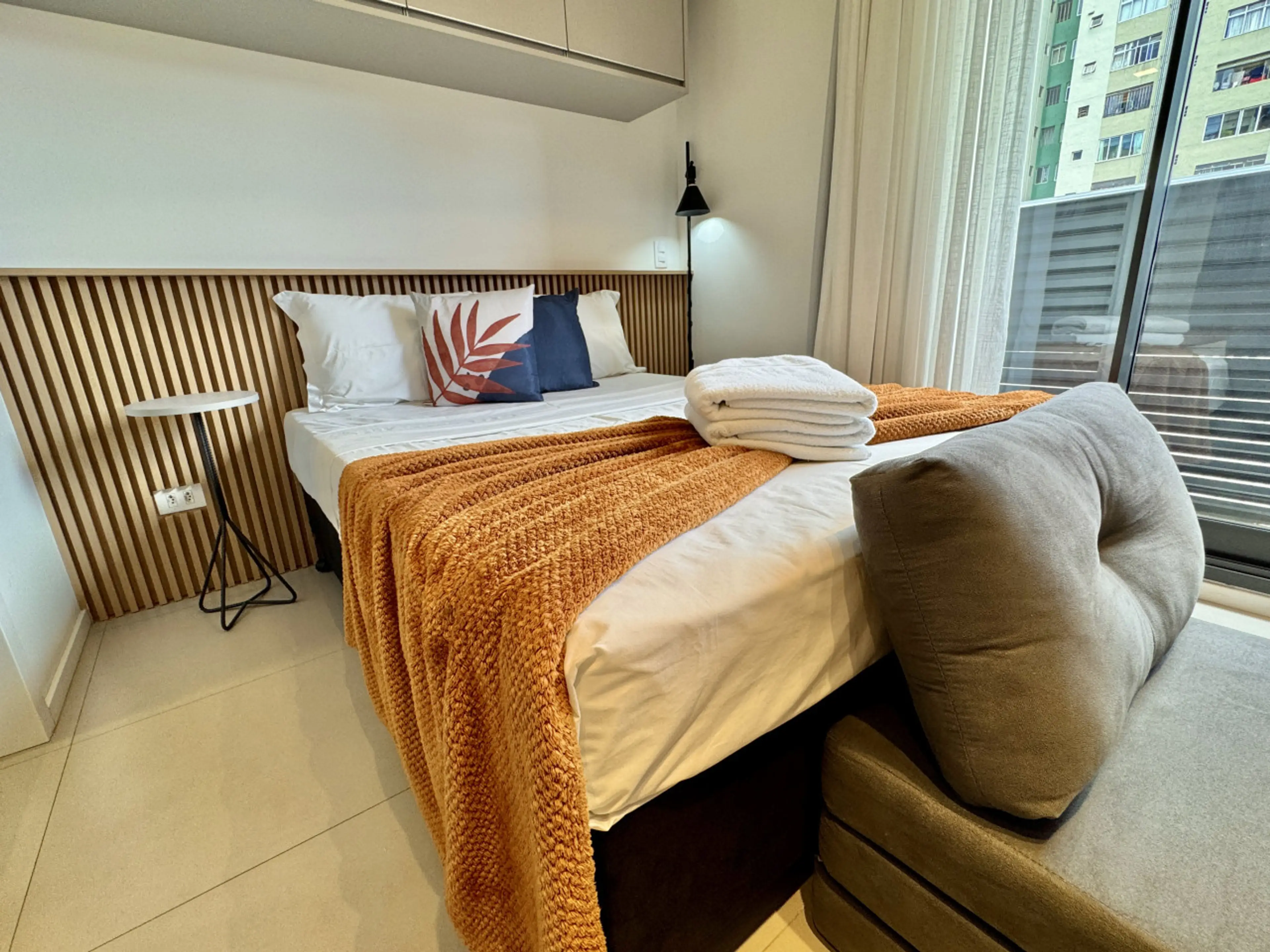 Studio totalmente pensado para Airbnb no Log Centro, região central de Curitiba, ao lado do passeio público e a 3 quadras do Shopping Mueller. Vaga de Garagem opcional, com contratação na segunda etapa da reserva pelo nosso site. Cozinha equipada com Geladeira, Fogão, Microondas , TV Smart, Cama Box...