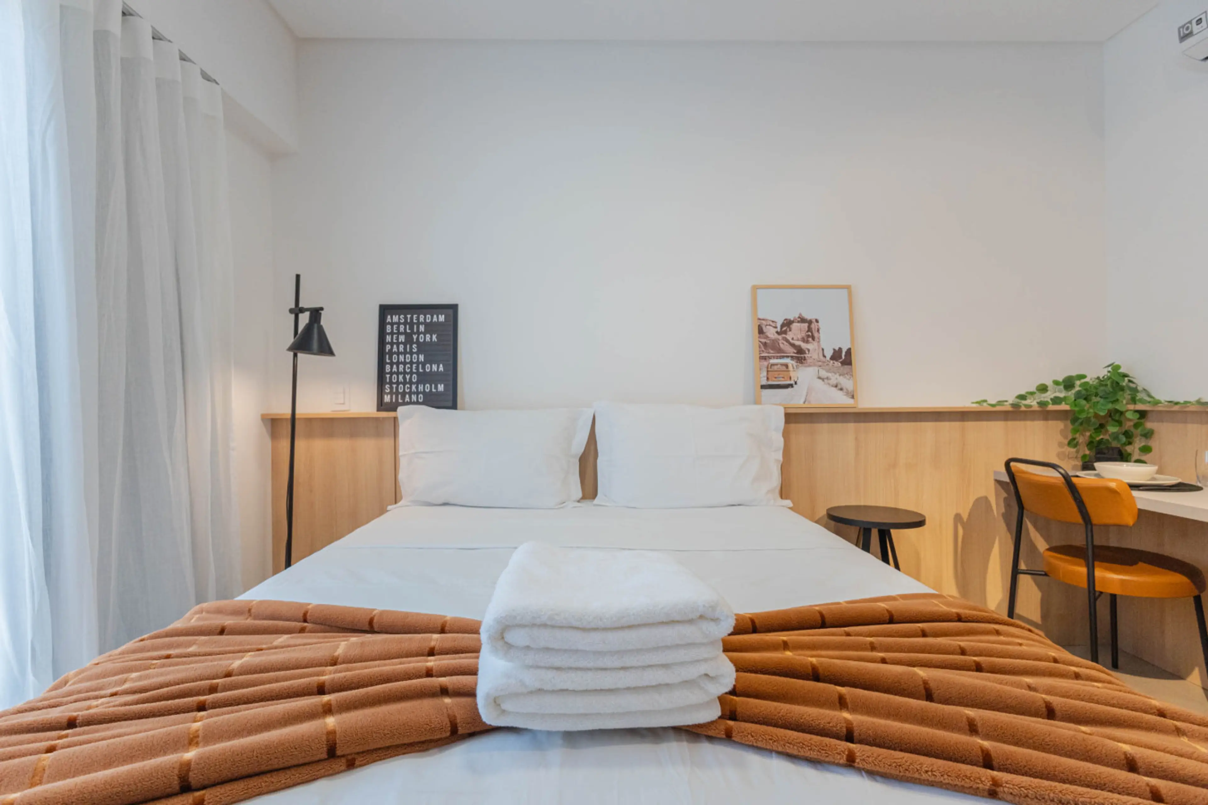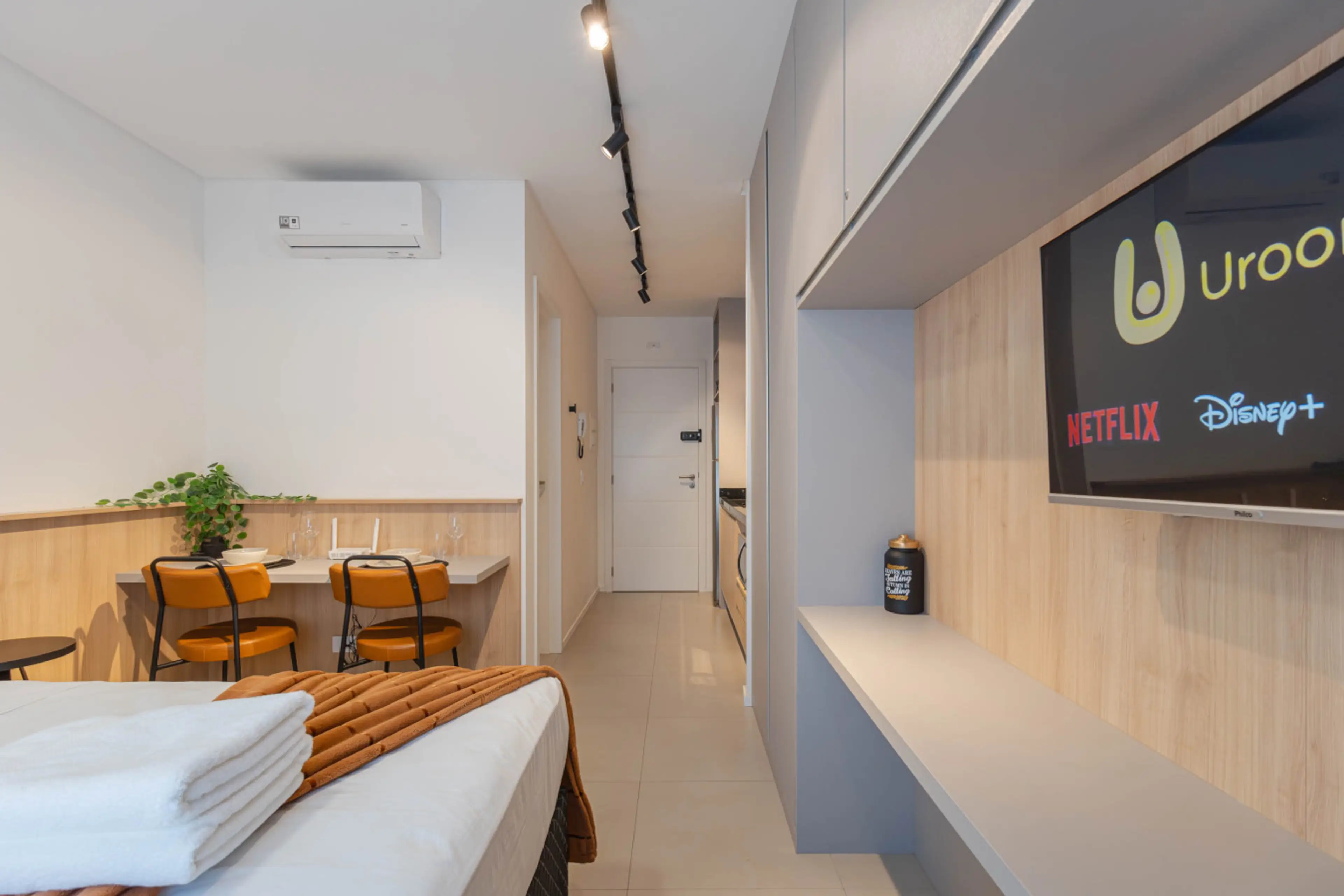Studio totalmente pensado para Airbnb no Log Centro, região central de Curitiba, ao lado do passeio público e a 3 quadras do Shopping Mueller. Vaga de Garagem opcional, com contratação na segunda etapa da reserva pelo nosso site. Cozinha equipada com Geladeira, Fogão, Microondas , TV Smart, Cama Que...