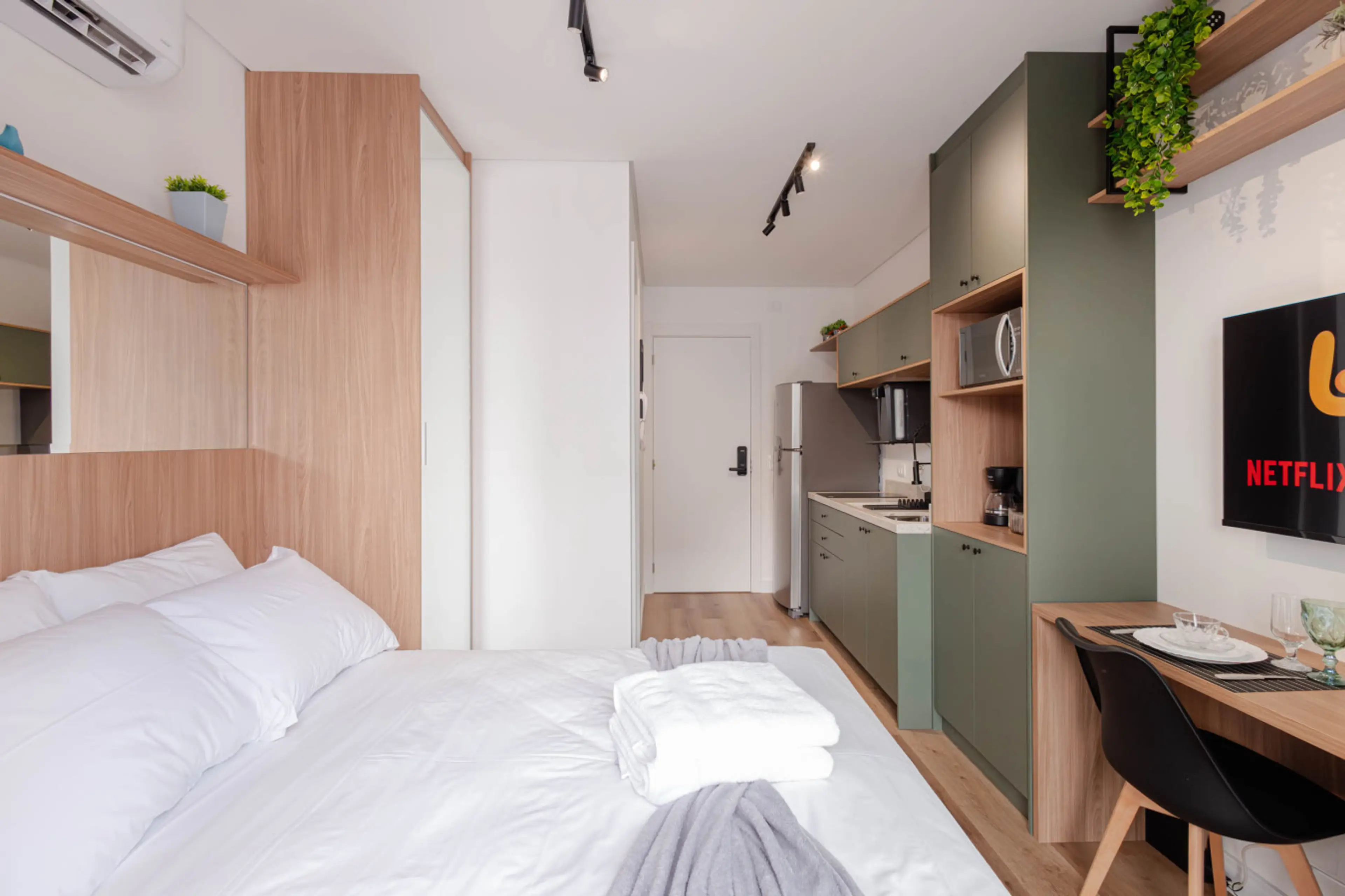 Apartamento moderno e aconchegante, ideal para quem busca conforto e praticidade. Todo o espaço foi pensado especialmente para Airbnb, com decoração charmosa, estrutura completa e localização privilegiada. O apartamento studio conta com cama casal box premium padrão hotel, sacada. Wi-Fi rápido e...